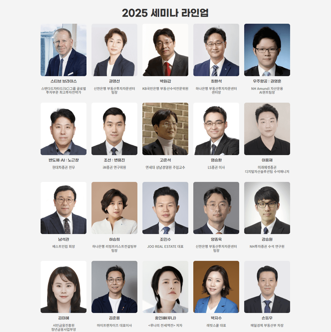 - 금융·부동산 시장 전망: 국내외 경제 전문가, 애널리스트, PB 등 다수 강연
