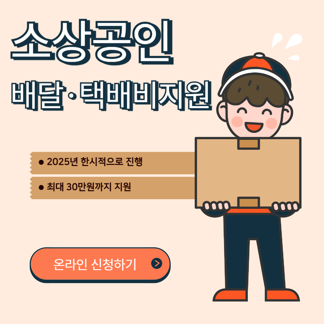 - 2025년 한 해 동안 소상공인 배달 택배비를 최대 30만 원까지 지원합니다.