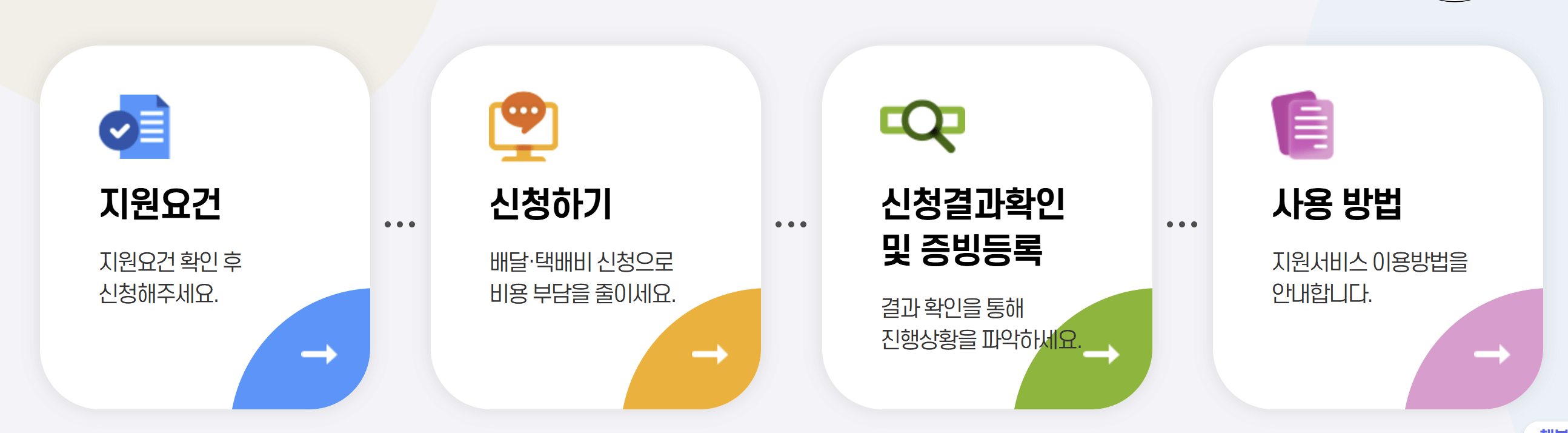 - 코로나19 이후 배달·택배 이용이 늘어난 소상공인의 경영 부담 완화를 위해 한시적으로 시행되는 지원사업입니다.