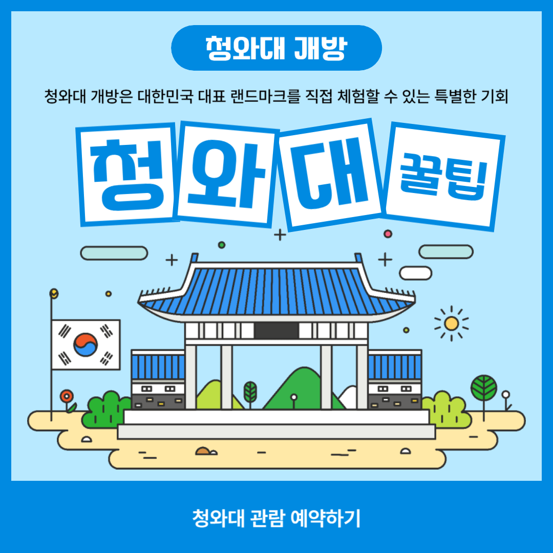 - 청와대 관람은 사전 예약 필수! 청와대 국민 품으로 공식 예약에서 쉽게 신청할 수 있습니다.