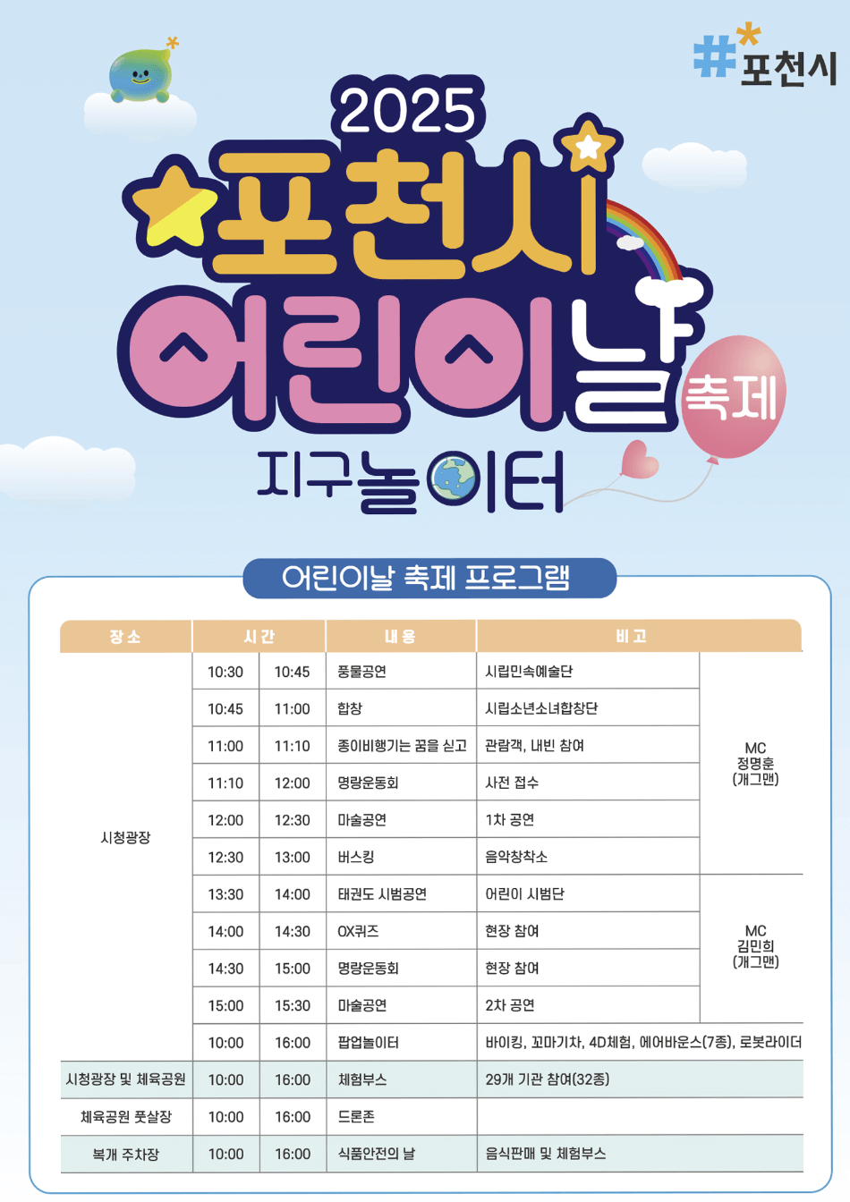 2025 포천시 어린이날 축제는 5월 3일(토)에 열리니 날짜를 꼭 확인하세요!