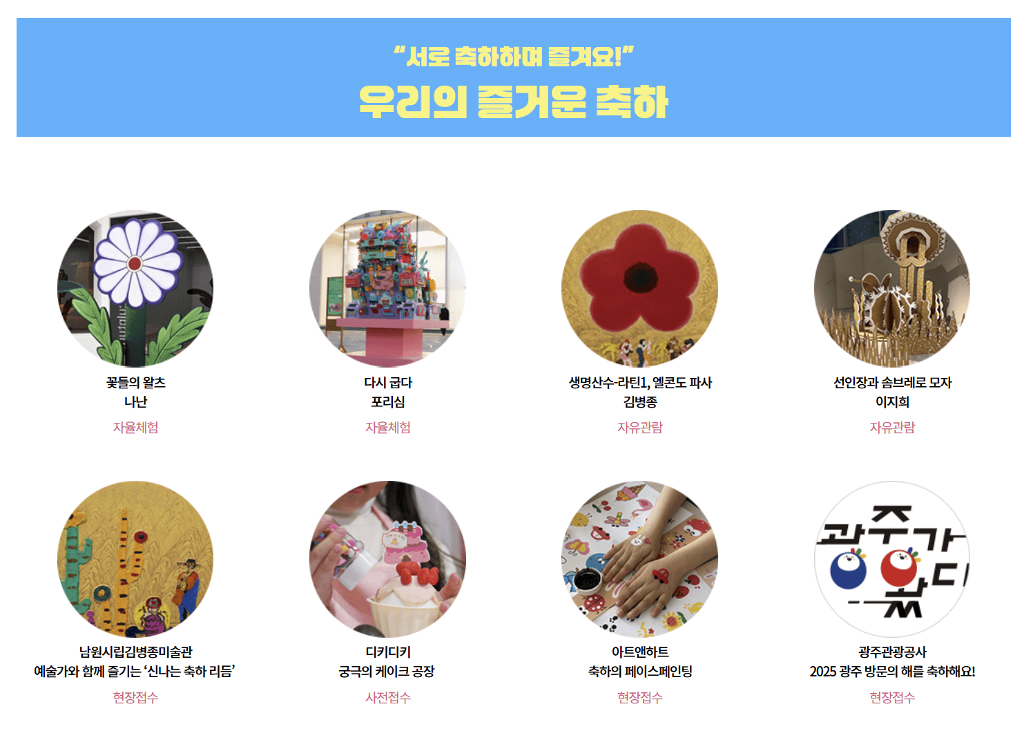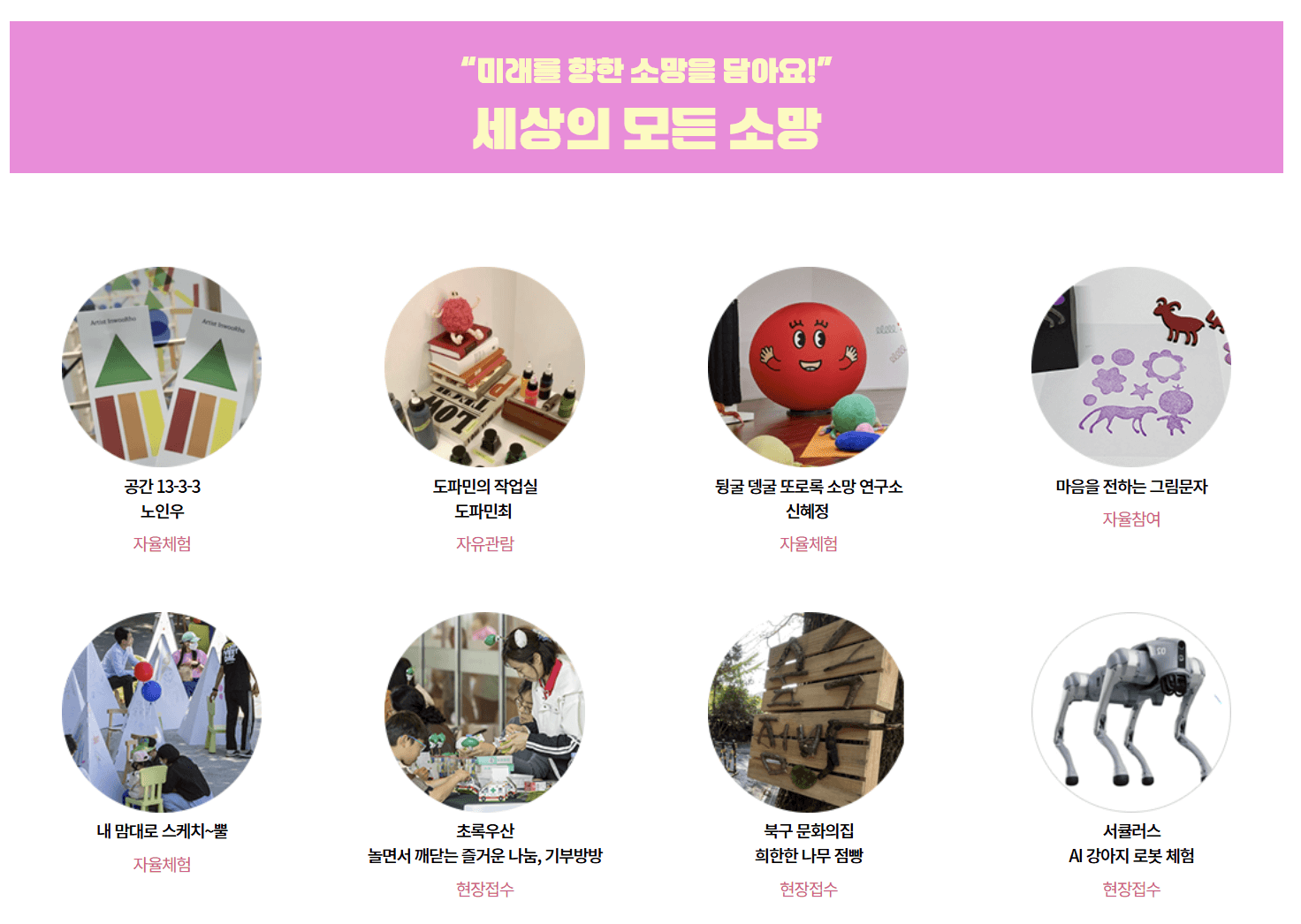 어린이 그림그리기 대회, SNS 인증샷, 글로벌 체험 부스 등 인기 프로그램은 현장 도착 후 바로 접수하세요! 일부 체험·공연은 유료이니 사전 확인 필수입니다.
