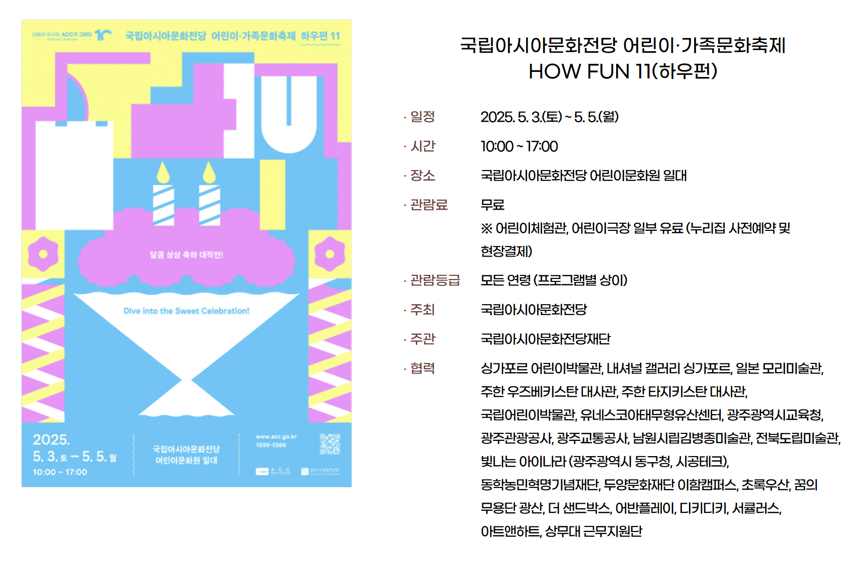 2025년 어린이날, 경북 지역에서 가장 주목받는 어린이 가족문화축제 하우펀11이 국립아시아문화전당(ACC)에서 화려하게 펼쳐집니다.